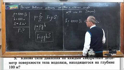 Задача на определения силы давления оказываемого на водолаза на глубине