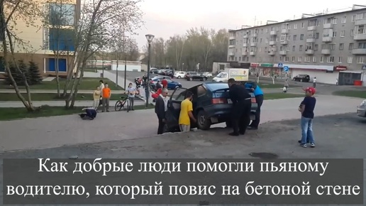 Как добрые люди помогли пьяному водителю, который повис на бетоной стене