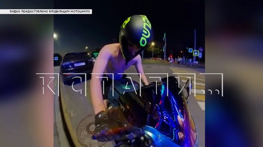 Неадекватный обнаженный угонщик, сначала пытался украсть мотоцикл, а потом бегал за хозяином, угрожая убить шлемом