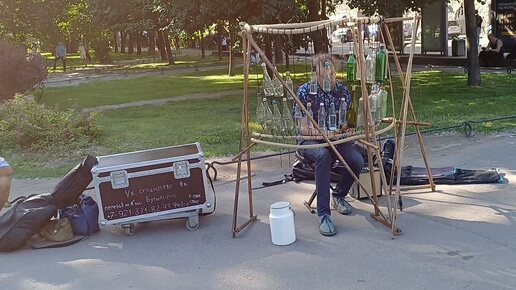 Знаменитая композиция "Попкорн". В исполнении уличного музыканта, который играет на бутылках, Санкт-Петербург, ст.м. Горьковская 2025 г.