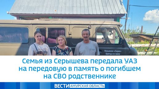 Семья из Серышева передала УАЗ на передовую в память о погибшем на СВО родственнике