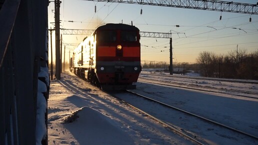 Тепловоз 2ТЭ10М-3263 с контейнерным поездом и буранчиком.