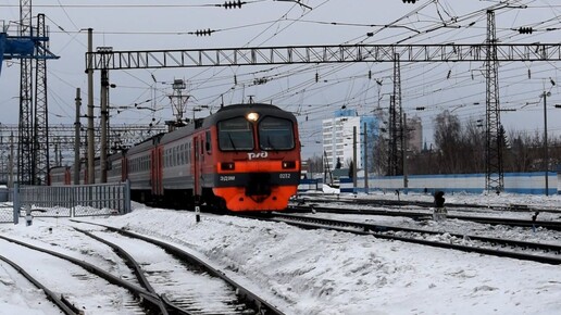 Электропоезд ЭД9М-0232 с приветливой бригадой.