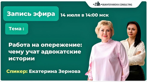 Запись эфира «Работа на опережение: чему учат адвокатские истории» с адвокатом Екатериной Зерновой
