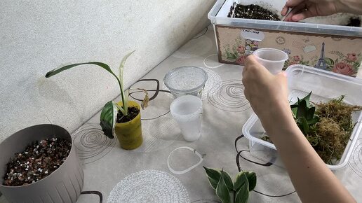 Продолжаю пересадки. Черенки хой и спатифиллум пикассо