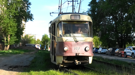 Трамвай Екатеринбурга Tatra T3SU СМЕ борт. №149/148 маршрут 8 на остановке "Пионерская"