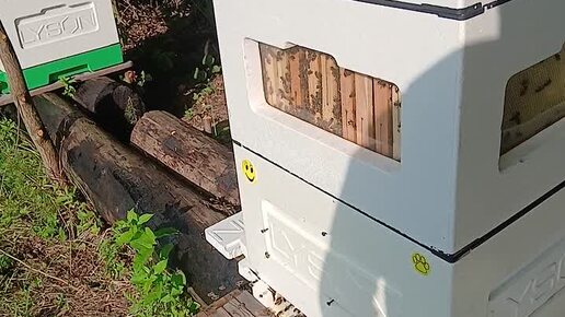Какая температура в улье и зачем пчёлы вентилируют улей в жару 14.07.2025г.🐝🌤Сколько пчёлы пьют воды и нужна ли им солёная вода 🌏🐝🏝