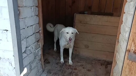 Маруся в приюте очень боится далеко отойти от своей будочки. 😥 Снова оказаться на остановке… нет, только не это! 😢