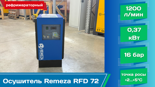 Осушитель рефрижераторный Remeza RFD 72: 1200 л/мин, 16 бар, 0,37 кВт, точка росы +2...+5°C. Краткий обзор от ООО "РД-Тех".
