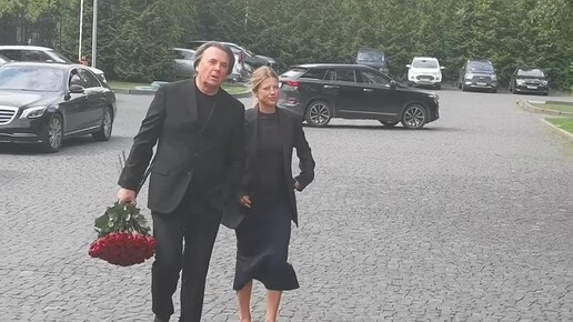 Константин Эрнст под руку с женой приехал на похороны Юрия Мороза