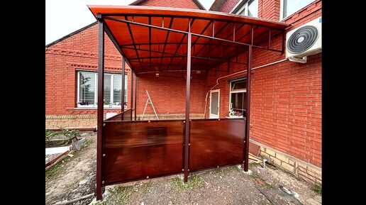 Навес из поликарбоната в Харцызске с закрытыми боками коричневого цвета.