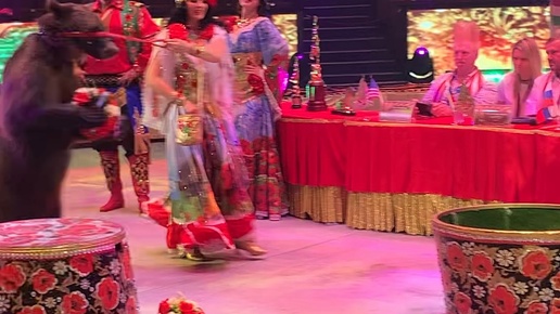 На пресс-конференции «Идол 2025» показали фрагмент аттракциона дрессированных медведей Алексея и Екатерины Плотниковых «Цаганская свадьба».