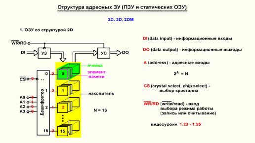 Видеоурок 4.48. Структура адресных статических ОЗУ и ПЗУ. Часть 1.