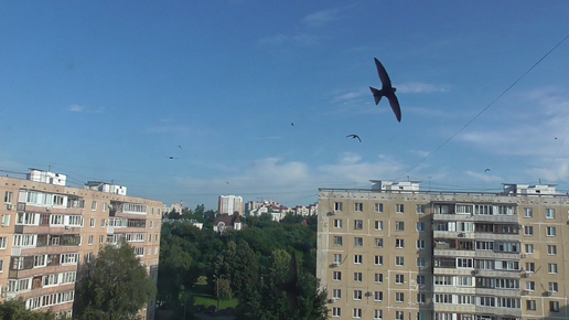 Птицы стрижи летают в небе. Июль 2025 год