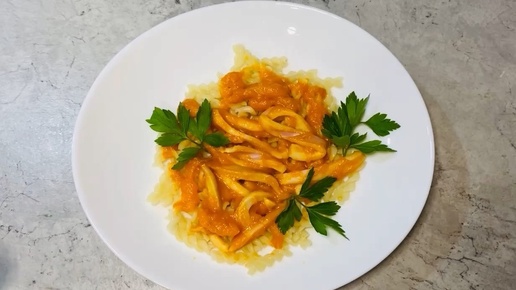 Паста с кальмарами и соусом из болгарского перца и помидоров - вкусное и простое в приготовлении блюдо