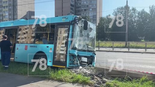 Автобус смял столб на проспекте Большевиков