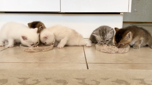 Зубастые хищники расправились с курочкой. Котятам один месяц.