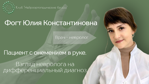 Нейроортопедические беседы. Пациент с онемением в руке. Взгляд невролога на дифференциальный диагноз. Фогт Юлия Константиновна