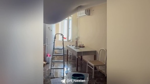 Натяжной потолок провис под тяжестью воды: последствия ливня в квартире на Нагатинской набережной в Москве