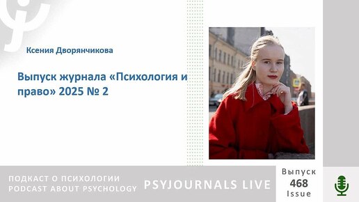 Дворянчикова К.Н. рассказывает о выпуске журнала «Психология и право» 2025 № 2