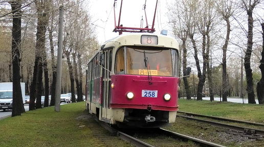 Трамвай Екатеринбурга Tatra T3SU СМЕ борт. №258/259 маршрут 8 следует по Проспекту Космонавтов