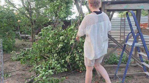 Обрезка деревьев и сбор урожая. С электрическими секатором и пилой это не проблема.