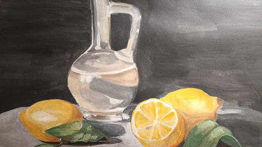 Рисую натюрморт "Аппетитные лимоны" гуашью, бумага А3 для акварели