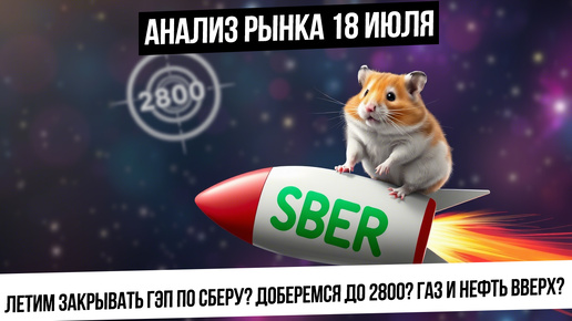 Анализ рынка 18 июля. Летим закрывать гэп по Сберу? 2800 по индексу достижимо? Газ и нефть вверх?
