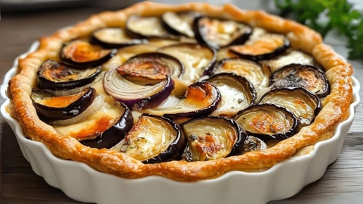 Пирог с баклажанами из слоеного теста. Просто, быстро, вкусно 😋❤️