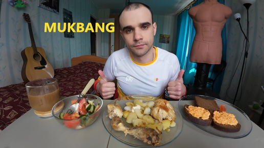 МУКБАНГ КАРТОШКА И КУРИЦА ЖАРЕНАЯ / САЛАТ / БУТЕРБРОДЫ С ЗАКУСКОЙ - МОРКОВЬ С ЧЕСНОКОМ / EATING MUKBANG ASMR АСМР