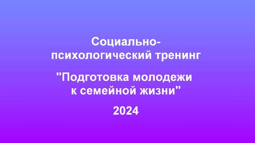 Социально-психологический тренинг "Подготовка молодежи к семейной жизни". 2024 г.