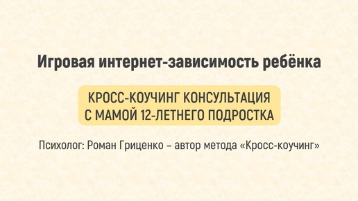 Кросс-коучинг консультация Романа Гриценко. Игровая интернет-зависимость ребёнка 12 лет