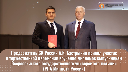 Председатель СК России А.И. Бастрыкин принял участие в торжественной церемонии вручения дипломов выпускникам РПА Минюста России