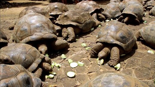 Чудеса острова Маврикий. Обед Гигантских черепах в парке Ваниль.