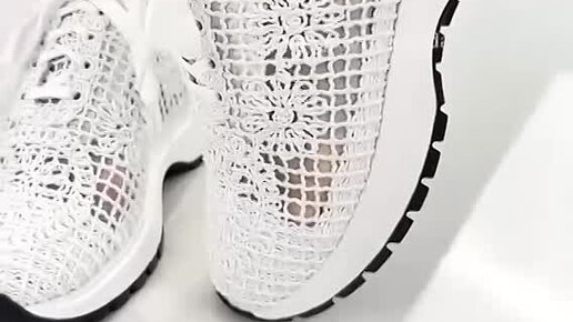 Белые вязаные кроссовки – аксессуар к женской одежде больших размеров