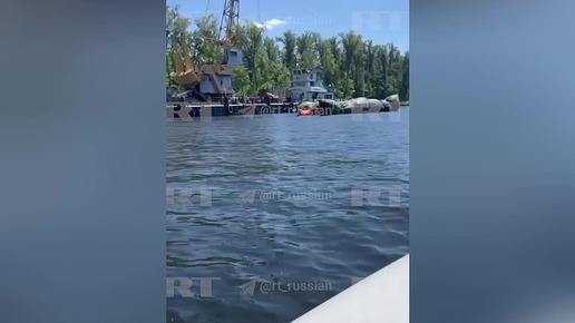 Самодельный плавучий дом, затонувший на Волге в Самаре, достали