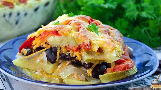 Сочный домашний обед. Картофельная запеканка с фасолью, кабачком и помидорами