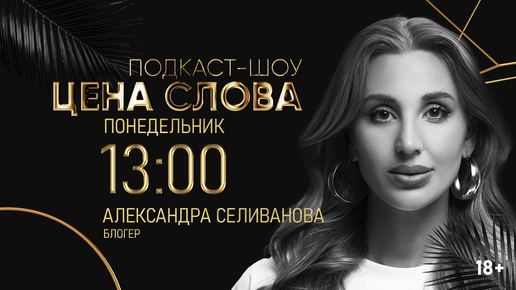 21 июля в 13.00 подкаст-шоу "Цена Слова" с АЛЕКСАНДРОЙ СЕЛИВАНОВОЙ