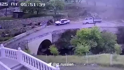 На камеры попал момент, как в Дагестане уазик с детьми теряет управление и переворачивается.