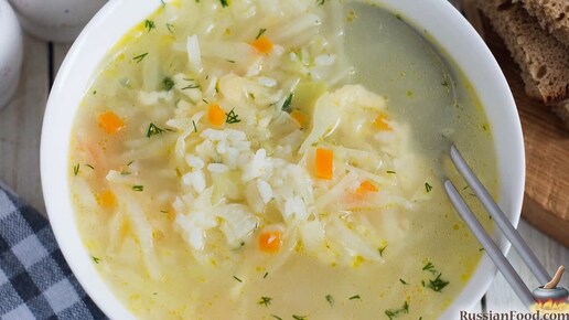 Лёкгий и быстрый. Рисовый суп с капустой и сыром