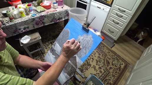 Дед весь день рисует картину