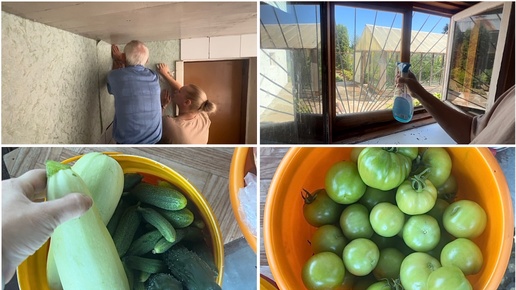 19 июля. Ремонт на даче. Попытка проредить морковь. Первые огурцы и кабачки