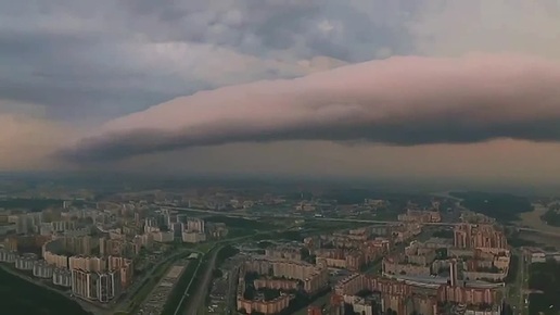 🌩 Камеры «Лахта Центра» засняли уникальное атмосферное явление — грозовой вал над Петербургом.
