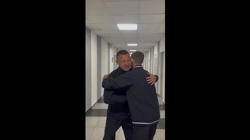 Андрей Тихонов Дмитрий Комбаров. Тренеры «Енисея» и «Чайки» встретились в подтрибунном помещении и поблагодарили друг друга (20.07.2025)