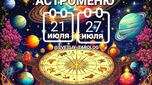 🔮 АСТРОМЕНЮ с 21 по 27 июля 2025 года 🔮