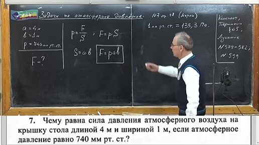 Задача на определение величины давления, оказываемого атмосферным воздухом, на крышку стола.