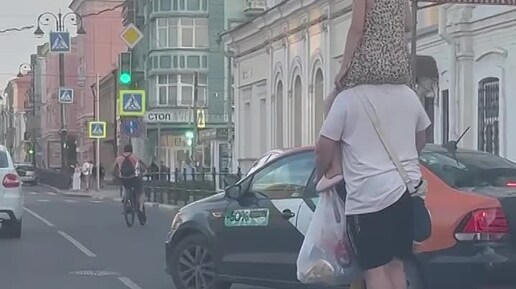 На плечах девушка, а в руках два пакета: такого водителя электросамоката засняли на дороге в Самаре