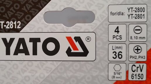 Набор бит Yato 5/16" 4 предмета ударные в пластиковой кассете YT-2812