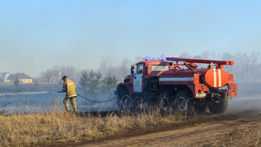Ландшафтный пожар. Работа пожарной машины АРС-14 на шасси ЗИЛ-131. / Extinguishing a landscape fire.