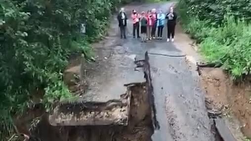 Бетонный мост рухнул в Подмосковье из-за сильных ливней.